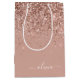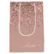 Roséguld - Rosa Glittrande Glittermonogram Namnpresentpåse. Detta är den perfekta söta 16-årspresenten, bröllop, bröllopsdusch, årsdag, baby shower eller möhippa presentpåse för någon som älskar glamourösa lyxiga och chic stilar.