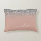Roséguld Rosa Silver Glitter Monogram Prydnadskudde