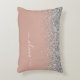 Roséguld - Rosa och Silver Glitter Skrift Monogram Namn och Initial Kudde. Kudden är den perfekta söta 16-årspresenten, bröllop, bröllopsdusch, baby shower eller möhippa-gåva till någon som dekorerar sitt rum i roséguld.