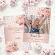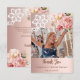 Ett modernt tackkortfoto för Bröllopsduschen. En roséguld gradientbakgrund dekorerad med rosa rosor, blommor och spets. Personifiera och lägg till ditt foto på framsidan och tackmeddelande på baksidan.