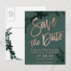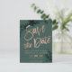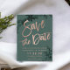 Roséguld script grön blad grönska spara datum Bröllopsinbjudan Samling. Skicka ditt spara datum-kort med denna eleganta falska roséguld typografi med akvarell gröna blad på grönska bakgrund, perfekt för chic stil bröllop