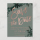 Roséguld skrift grön blad grönska spara datum Bröllopsinbjudan Samling. Skicka ditt spara datum-kort med denna eleganta falska roségulds typografi med akvarell gröna blad på sagegrön bakgrund, perfekt för chic stil bröllop