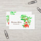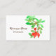 Ett botaniskt temat affärskort som innehåller ett kluster av ljusröda roséhips i tillväxtstadiet innan de torkar och blir ett djupt burgudin färg på buskens stam illustrerad med vattenfärg. Ett underbart affärskort för botaniska aromatterapiföretag. På baksidan finns en annan spirg av rosehips, och du kan justera storleka där du vill och redigera texten.