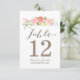 Bordnummerkort. Perfekt för bröllop eller andra tillfällen. Detta kort har vackra akvarellblommor och en blandning av modern typografi, allt på vit bakgrund.