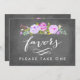 Denna tryckfunktion har akvarellmålade blomrosor och säger "Favoriter. Ta en." i lila med svart tavla bakgrund
