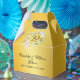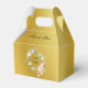 Elegant blomsterliknande 50-års guldbröllopspresentlåda med en vacker rosgirland med personliga namn och speciellt datum i chic typografi på en guldbakgrund. Du kan också anpassa med ditt eget tackmeddelande under locket. Ett perfekt sätt att tacka dina gäster! Designad av Thisisnotme©