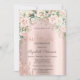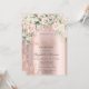 En modern, chic och glamourös inbjudan med rosor, glitterdroppar på en rose gold bakgrund.