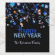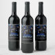 Personlig Nya årets vin-etikettdesign med glansig rosett band och brant ljus på svart bakgrund. Texten är helt och hållet anpassade.