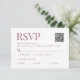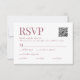 Elegant rosewood rosa bröllop OSA-kort med skannerbar QR-kod för webbplatsen och 3 redigerbara måltider. Exemplet omfattar kött, fisk och veganmenyer men kan ändras till vilken annan text som helst. Anpassa den med din egen text.
