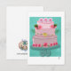 Storslagen och utsmyckad, denna bit har en hög trefaldig tårta placerad mot en rik teal bakgrund. Kontrasten mellan den djupa bakgrunden och de frodiga, realistiska rosa rosorna skapar en fantastisk visuell djup.