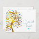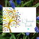 “L' Shanah Tovah.” Ett grafiskt falskt guldträd med glittriga turkosa, turkosfärgade, lila och blå Davidstjärnor och prickiga ”blad” på vit bakgrund, hjälper dig att inleda festligheterna för det judiska nyåret, Rosh Hashanah. På baksidan skriver du din personliga hälsning med hjälp av den medföljande lättanvända mallen eller tar helt enkelt bort den för en handskriven hälsning. Känn värmen och glädjen under högtidstiden när du skickar detta moderna, fantastiska, glittriga vykort. Skicka det till någon speciell!