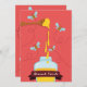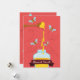 Ljusröd kort med rinnande honung och utskurna bin för ett Rosh Hashanah platt kort.