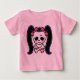 Flickans huvud och korsben i pirat, med bäckensvansar i rosa, rosiga kinder och många pirater. Färg, t-tröjor, svettningar, kort, knappar, presenter.
