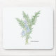 Musmattor med en botanisk illustration av en kvist av en blommande rosmarin örtväxt. Konstverk upphovsrätt: Dominic A. White. Med ensamrätt.