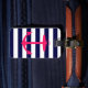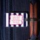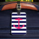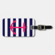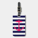 Ett ljust, rosa silhouette för neon av en ankra är på en marinblå och vit görad randig bakgrund. En roligt, nautisk design som ska stativ ut.