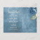 En ljus, djärv blomsterbukett med rosor i dammig blå och persikofärgade nyanser är brännpunkten för många av delarna i denna brölloppsserie som också har elegant skrivstiltext och moderna designlayouter. 'Spara datum'-postkortet som visas här har en sidoborder med rosor och en vacker, abstrakt akvarell på baksidan i dammig blå. Du kan enkelt skriva in dina personliga meddelanden och bröllopsdetaljer med hjälp av den medföljande mallen. Sök på ID584 för att se alla matchande delar i denna vackra brölloppsserie.