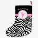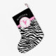 Julstrumpa för dans för vildzebra tryckballerina i rosor. En balettdansörsilhouette poserar insida en cirkla, och det finns "polka-pricker" banret för kontrast. Tillfoga ditt egna namn, innan du beställer! Använd "skräddarsy den" knäppas för mer alternativ, däribland en olik stilsort, dessutom!