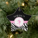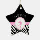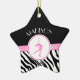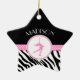 Prydnad för jul för vildzebra tryckkonståkning i rosor. En konståkaresilhouette poserar insida en cirkla, och det finns "polka-pricker" banret för kontrast. Tillfoga ditt egna namn, innan du beställer! Använd "skräddarsy den" knäppas för mer alternativ, däribland en olik stilsort, dessutom!