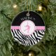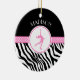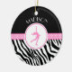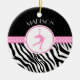 Prydnad för jul för vildzebra tryckkonståkning i rosor. En konståkaresilhouette poserar insida en cirkla, och det finns "polka-pricker" banret för kontrast. Tillfoga ditt egna namn, innan du beställer! Använd "skräddarsy den" knäppas för mer alternativ, däribland en olik stilsort, dessutom!