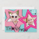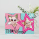 Partynågot liknande en rockstjärna! Rosa stjärnor på aqua slösar bakgrund med flickan som sjunger och dansar: höften och den sassy rockstjärnan tackar dig att card.