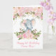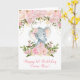 Ursnyggt kort för elefanttemahälsning som presenterar kvinnliga rodnad- & rosavattenfärgblommor och fauxguldkonfettiar