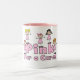 En gullig mugg med fem stick figurkvinnlig som ha på sig rosa och rosa text som läser "rosor för en bot!". Denna bröstcancermedvetenhetmugg kan vara personifierat lätt på fläcken med ett namn eller annan text av ditt primat.