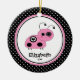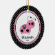 Den daterade gulliga rosa nyckelpigaflickajulen smyckar uppsättningen på prucken bakgrund för svart & för vit polkaen. En undra julgåva sure som ska uppskattas för många år till komen.