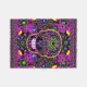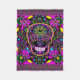 En sockerskalle i neonrosafärger och en blommabakgrund.