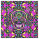 En sockerskalle i neonrosafärger och en blommabakgrund.
