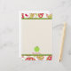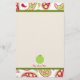 Brevpapper som presenterar en rosa, och gröna paisley gränsar över bästa och nedersta med gröntklippning. Personifiera med ditt namn på grund under illustration av det gröna äpplet.