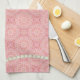 Denna eleganta kökshandduk är perfekt för något elegantt kök. Den presenterar en rosa och guld- bakgrund. Diagram av pärlor är upptill och bottnar.