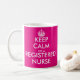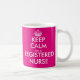 Rosor håller lugn im en legitimerad sjuksköterskamugg för kaffe, tea, och annan dricker. Gör din egna roliga behålla att lugna, och att bära på parodi för rn-sjuksköterskor, sjuksköterskaveckan som vårdar skola studentenfavören, designen för mall för Etc.-vintageKeepcalm typografi med kronan. Dubblera sidtrycket. Flickaktigt rosor eller beställnings- färg. Vårda humor.