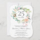 Med en delikat akvarellblommig krans kan denna eleganta botaniska 25-årsjubileumsinbjudan anpassas med din speciella silverjubileumsinformation. Baksidan har en matchande blomsterkrans som ramar in jubileumsdatumet i elegant vit text på silverbakgrund. Designad av Thisisnotme©