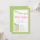 En smutt och ser inbjudan för flicka med en rosa- och gröntfärgintrig. Bunting är grön gingham och rosadamast. Illustration av ett exponeringsglas av rosa lemonade med limefrukter på lämnad grund. Bakgrund är grön.