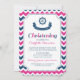 Personifierade nautiska temachristeninginbjudningar i eleganta och moderna mörka marinblåa fuchsia shock rosa och för sparresicksackar för vit roligt mönster med frakten rullar och banret. Anpassadet med din text, kontaktar oss för att be en färgändring.