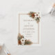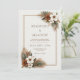 Välkomna era gäster med den varma, sofistikerade charmen hos denna jordnära botaniska komposition. Designen förankras av frodiga hörnarrangemang med en iögonfallande rostorange blomma och ömtåliga vita botaniska blomaccent med mörka, detaljerade centra. Mycket texturerade bronsade palmlövsmotiv och skarpa gröna blad skapar en modern boho-vib, medan en slank dubbelbronsram ger en polerad fokuspunkt mot den subtilt texturerade krämfärgade bakgrunden. Denna bröllopsinbjudan är ett utmärkt val för en öken-boho-ceremoni, en rustik höstfirande eller en förfinad utomhusfest. Den säkerställer att dina evenemangsuppgifter presenteras med en organisk, högklassig estetik som