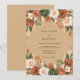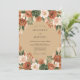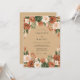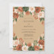 En varm färgpalett av rost och krämfärgade akvarellrosor skapar en frodig botanisk display i denna design. De jordnära tonerna kompletteras av skoggrön eukalyptus och ömtåliga bladstjälkar mot en naturlig tan bakgrund. Detta blomsterkonstverk fångar en organisk och sofistikerad stämning perfekt för en skörde- eller skogstema.