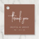 Designad för att matcha våra Modern Handwriter-bröllopsinbjudningar. En vacker typografibaserad design med minimalistisk känsla, med "tack" och två linjer anpassningsbar text i modernt handskrivet skript och klassisk serif-skrift på en terracotta-rust bakgrund.