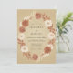 Denna design har en varm palett av rost, terrakotta och kräm ställd mot en jordnära tan bakgrund. En delikat arrangemang av akvarellrosor och dalior accentueras av mjuk höstlig lövverk och torkade blad. Den estetiken fångar en mysig och rustik stämning, perfekt för en utomhus- eller skördefestlig event. Dess vintageinspirerade botaniska element frammanar en känsla av organisk elegans.