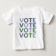 I dammiga nyanser av blått och grönt, ordet RÖSTA i stora blockbokstäver. Dela känslor om val. Blått representerar demokrater och grönt representerar miljön.