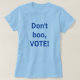 T-shirt för kvinnor med korta ärmar visar blåa bokstäver med texten "Rösta inte nej, RÖSTA!" Demokrater, liberaler, progressiva måste RÖSTA! Bli politisk och gör din röst hörd. Precis som Barack Obama säger.