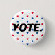 Rösta svart typografi på röda vita och blå stjärnor mönster patriotisk, modern knapp för politiska val. Även underbar att fira fjärde juli, Independence day, julfester. Kontrollera om det finns matchande koordinatelement i resten av samlingen.