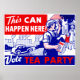 Vintagen poster att uppmana till stöd för kandidaterna till Tea Party vid valurnorna. Poster står: " Det här kan hända här! Rösta Tea Party " som skildrar en arbetande man, som i sin tur är välkommen av sin familj efter att ha arbetat.