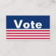 Längst upp visas ord Vote i fet vit text med mörk blått bakgrund. Vid grund går rött och vitt rand över affärskortet. Du kan redigera texten om du vill.