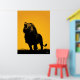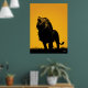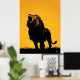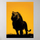 Röstande Lejon Affisch – Svart Silhuett på Gul Bak