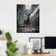 Smakfullt och majestätiskt präglas detta rostiga hjortmotiv av väderbitna stålplattor, exponerad stomme, korrosionstexturer i lager samt höga horn smidda av vriden armeringsjärn och gammal rörledning. Stående i en bortglömd lagerlokal av sprucken betong, trasiga fönster, hängande kedjor, drivande damm och bleka ljusstrålar utstrålar hjorten en ädel tystnad och en filmisk mystik. Perfekt för loft, ateljéer, kontor och samlares interiörer. En iögonfallande statement pjäs för fans av industriell vilda djur, rustik dekoration och stämningsfull djurbild.