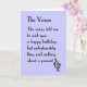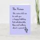 Ett födelsedagskort med dålig dikt och illustration om att lyssna på "rösterna" (och inte ge en present).