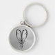 Detta tungt stylized symbol för zodiacen undertecknar vädur har det utseendemässigt av cast ut ur fast järn. Nedgångar för en skugga på rostfritt stålbakgrunden som gör symbolet att verka att flyta precis ovanför ytan av denna keychain.