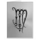 Detta tungt stylized symbol för zodiacen undertecknar våg har det utseendemässigt av cast ut ur fast järn. Nedgångar för en skugga på rostfritt stålbakgrunden som gör symbolet att verka att flyta precis ovanför ytan av detta kort.