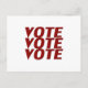 Rösta rösten rött modernt typografiskt minimalistiskt vitt vykort. Röd text på vit, redigerbar färg-bakgrund.